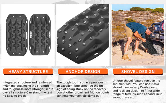 - 【TOOTH-BITE EFFECT】The Tooth Surface of our Recovery Track provides an excellent Bite Effect, and its prominent friction points can help your vehicle climb out of any situation, making them excellent Offroad Recovery Kit items. Get unstuck faster and safer.